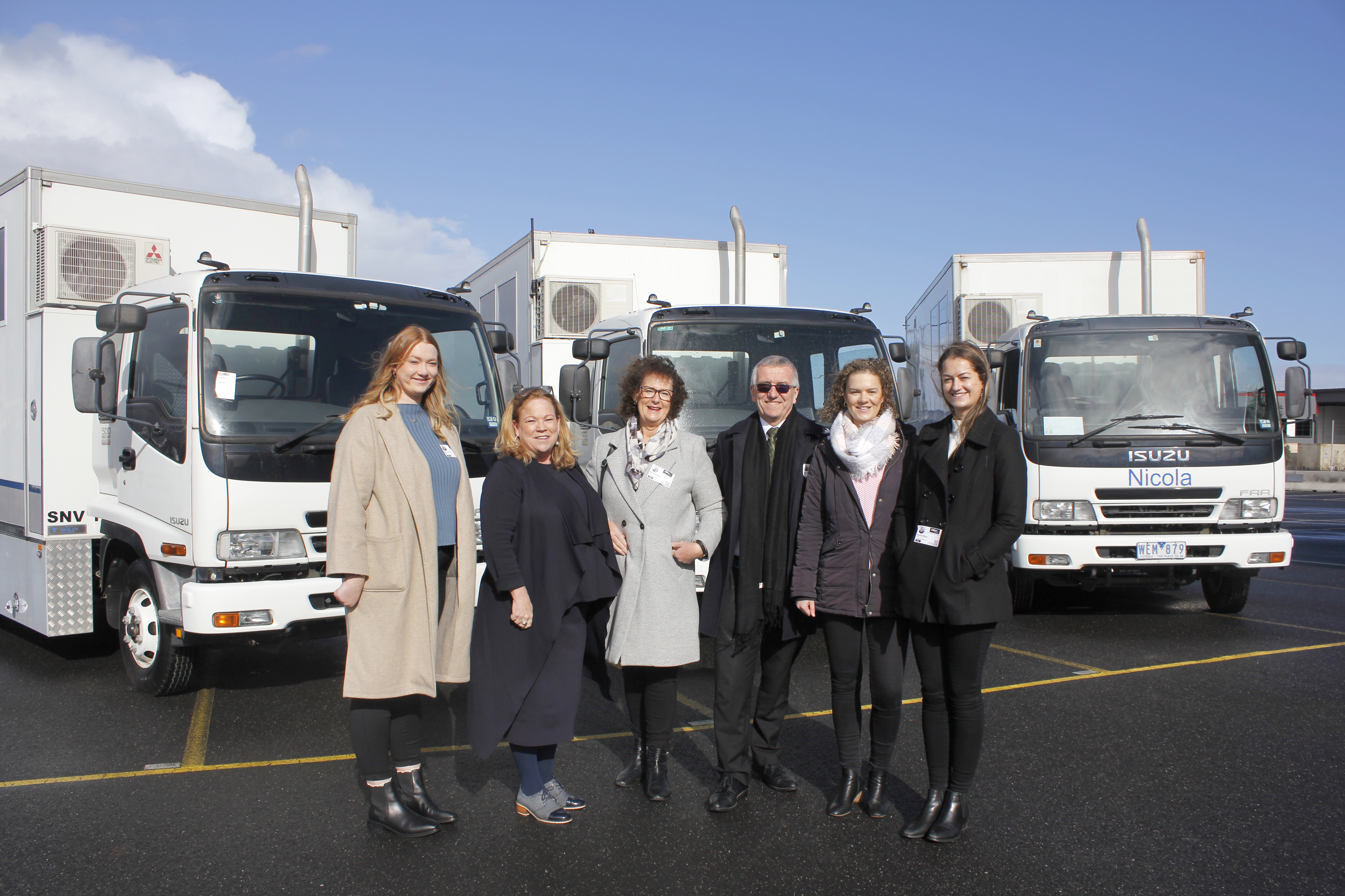 Before the vans were donated, Chief Executive Officer Sue McKee and Tim Hogan joined Colin’s wife, Wendy, and his three daughters, Ella, Nicola, and Fiona at CEVA Logistics in Truganina to inspect the vans and view the inscriptions on the plaques.