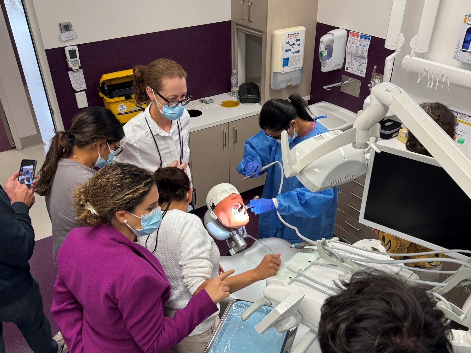 Donning gloves, gowns, and goggles (loupes), the clinicians progressed from theory to practical demonstrations complete with resources including tongues and manikin heads.