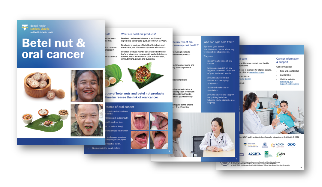 A new brochure has been developed to raise awareness about the association of betel nut use and oral cancer disease, particularly for Victoria's CALD community. -